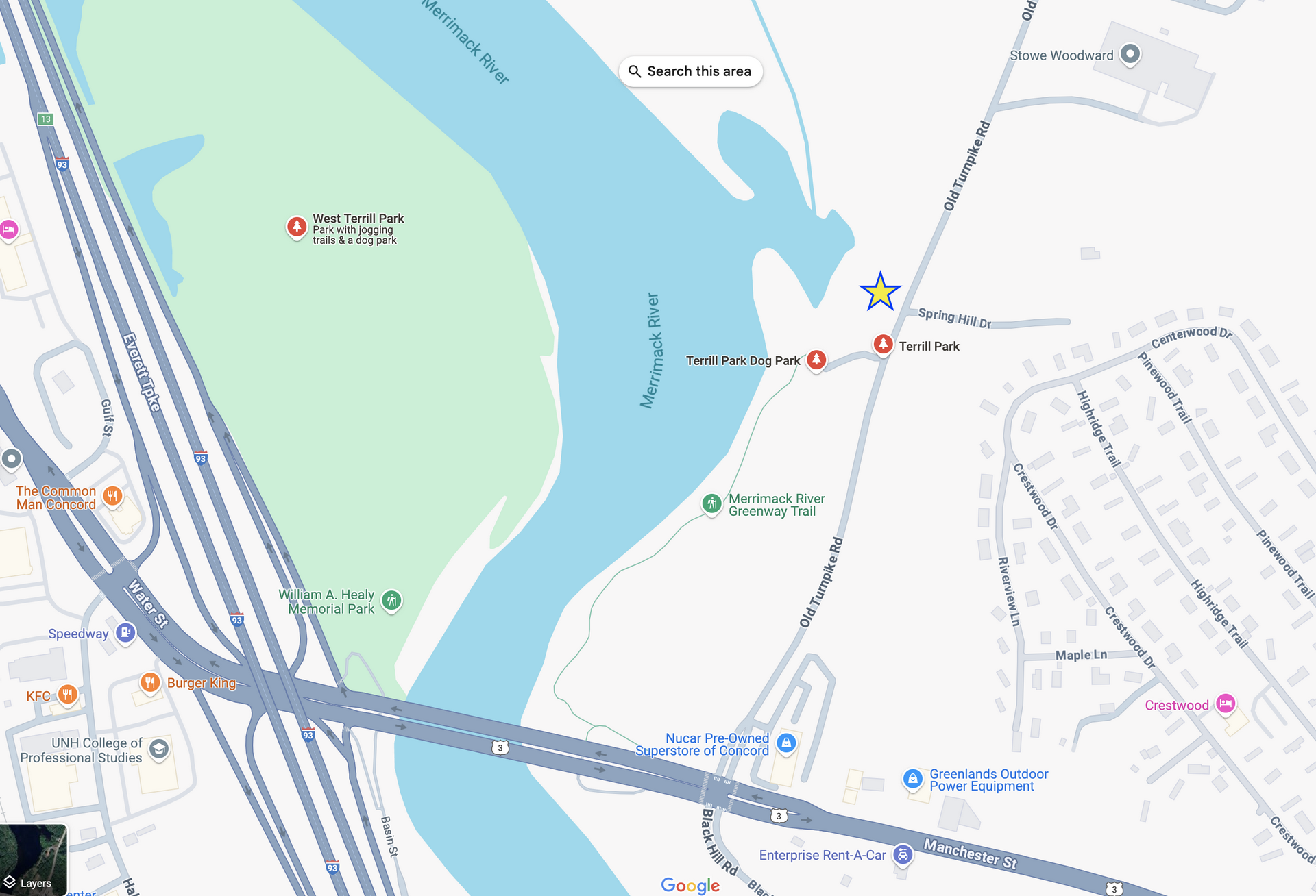 Currently, we are setup in the upper parking area at Terrill Park in Concord, NH (yellow star on the map) every Saturday from 10am until 1pm.